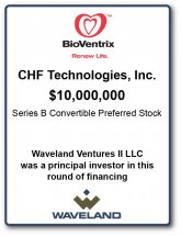 CHF Technologies, Inc. d/b/a BioVentrix has developed and is marketing the Blue Egg™ Sizer, its first generation of a series of proprietary technologies for the treatment of congestive heart failure, a large and growing market traditionally treated by drugs, which typically alleviate only the symptoms of the disease but do little to treat the underlying condition.